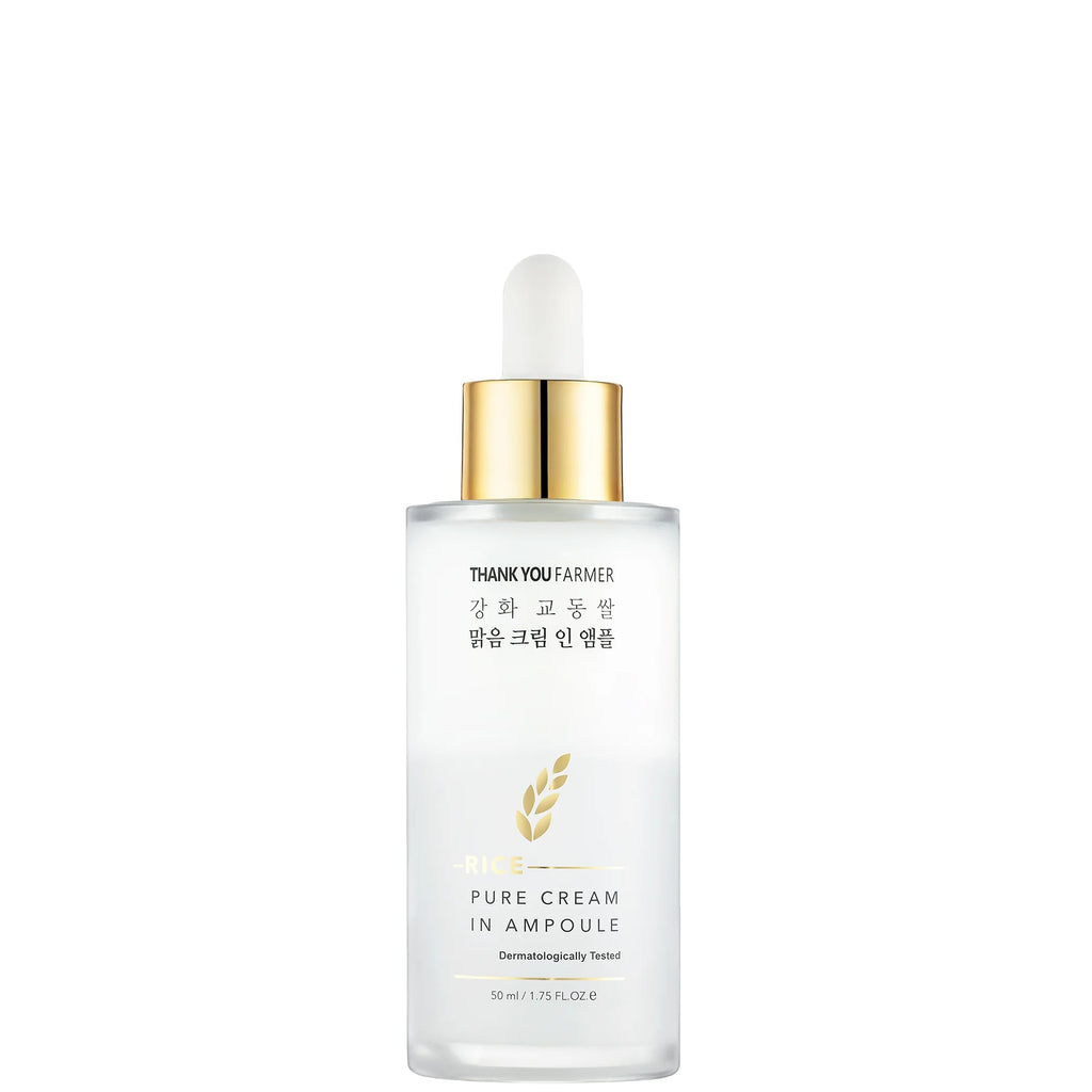 Meet Rice Pure Cream in Ampoule by Thank You Farmer. This innovative formula blends the long-lasting moisture of a cream with the quick, deep absorption of an ampoule. Shake to mix its two layers and enjoy a milky, essence-like texture that hydrates without any stickiness.